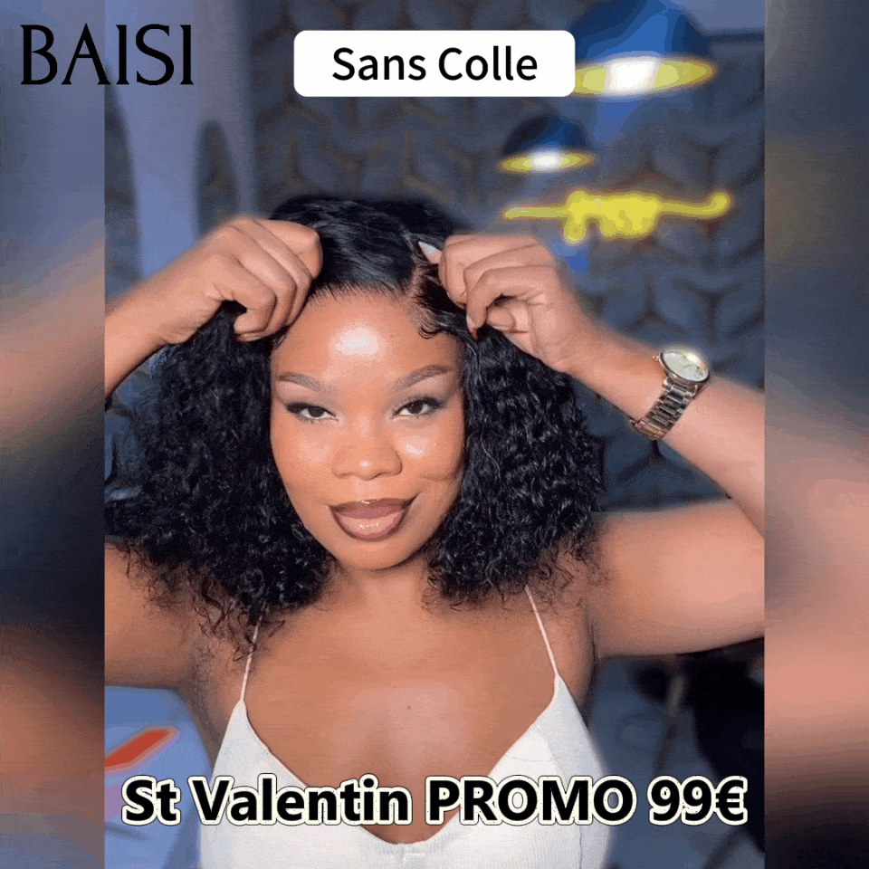 BAISI Promo Perruque Sans Colle 13X4 Curly Noir san colle 10 Pouces 99€ en 100% Cheveux Humains VIP100