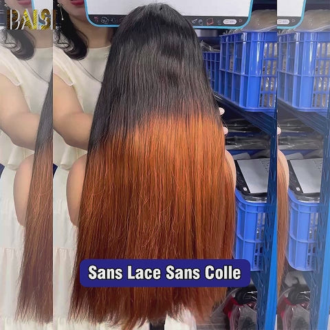 BAISI 2X6 Perruques de Luxe Lisse sans colle en couleur Marron et Noir 1BT30# A1 Fabriquées par les cheveux double drawn mèches vièges volume 300% densité plus de 20 ans d' utilisations B