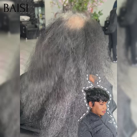 48H Livraison TVA 0€ BAISI Perruque Pixie 47€ Lisse NOIR ou Mixte sans Colle sans lace Couleurs personnalisées en 100% Cheveux Humains