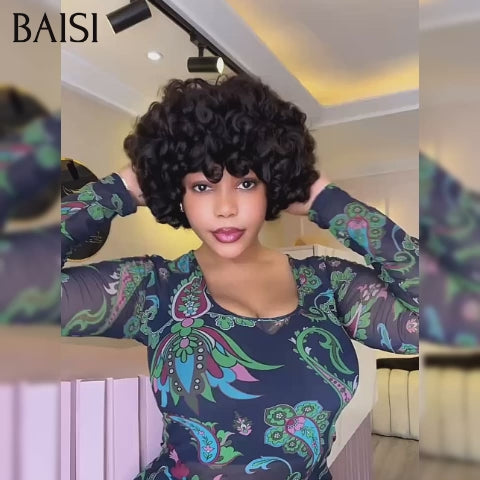 48H Livraison TVA 0€ BAISI Perruques egg Wave avec Frange 10 pouces 79€sans colle sans Colle Fabriqué à la Machine en 100% Cheveux Humains