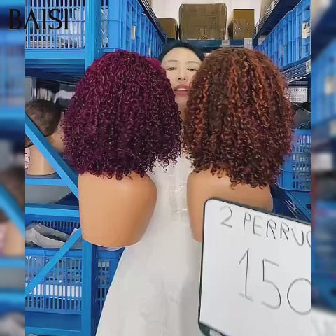 BAISI 2 Perruques pour revendre 150€ 4X4 lace Bob curly wave 12 pouces couleur 99J# et 4/350# en 100% vrais cheveux humains BS65