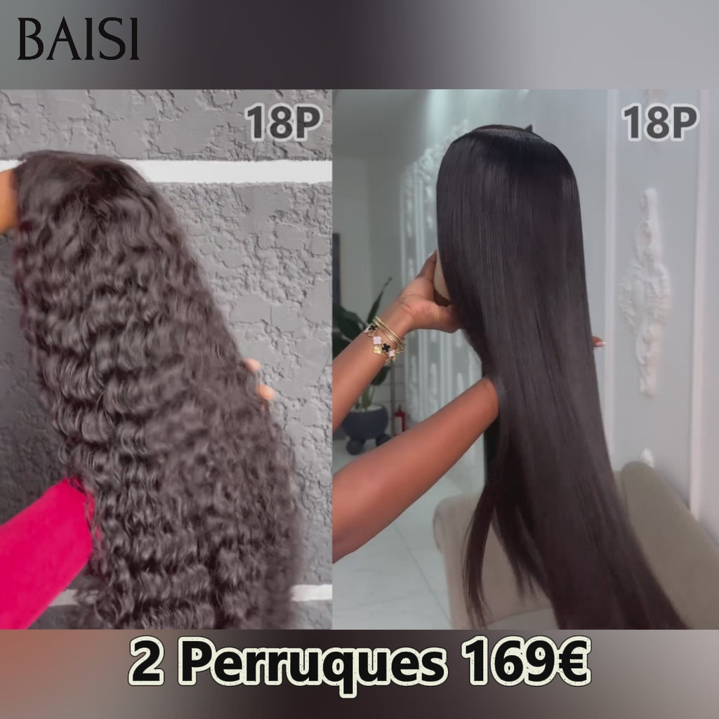48H Livraison TVA 0€ BAISI Lot de 3 perruques 4X4 lace 18 Pouces Lissse, curly et body wave en 100% vrais cheveux humains 199 euro FR38