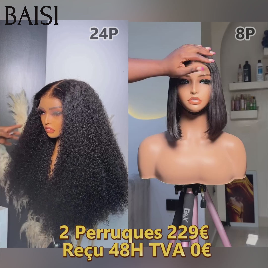 BAISI Moitié Prix -50% 2 perruques 229€ ou 3 perruques 269€ en France Reçu 48 TVA 0€ 100% vrais cheveux humains