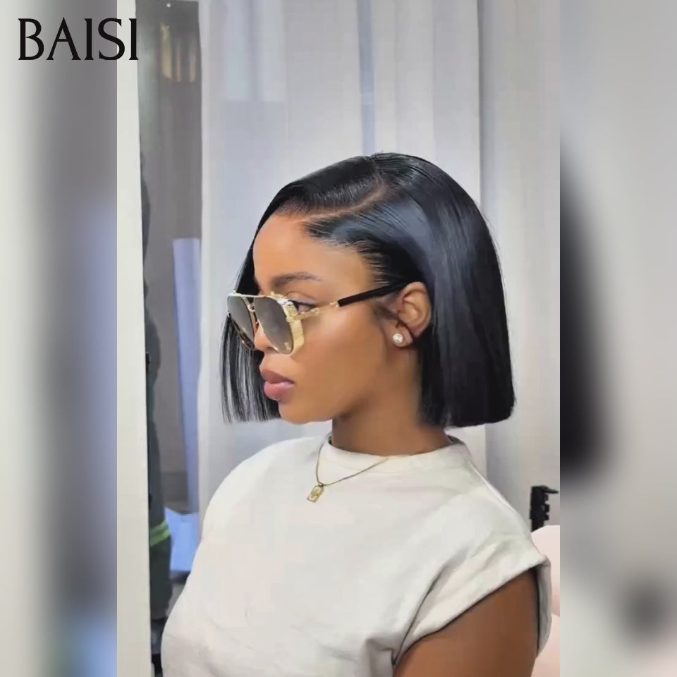 48H Livraison TVA 0€ 13x4 lace frontal Perruque Lisse 8 Pouce 68€ produit BOB en France en couleur NOIR en 100% Cheveux Humains