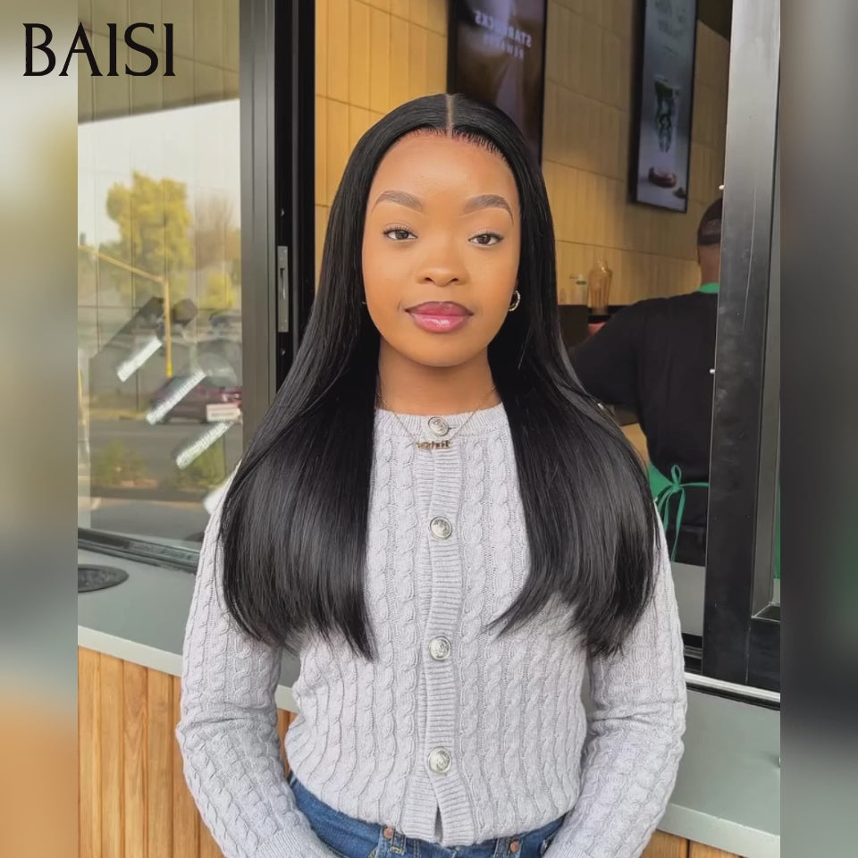 Promo Noël BAISI 13x4 Frontal Perruque Lisse 16 pouce 89€ en Couleur NOIR moitié prix en 100% Cheveux Humains MP50