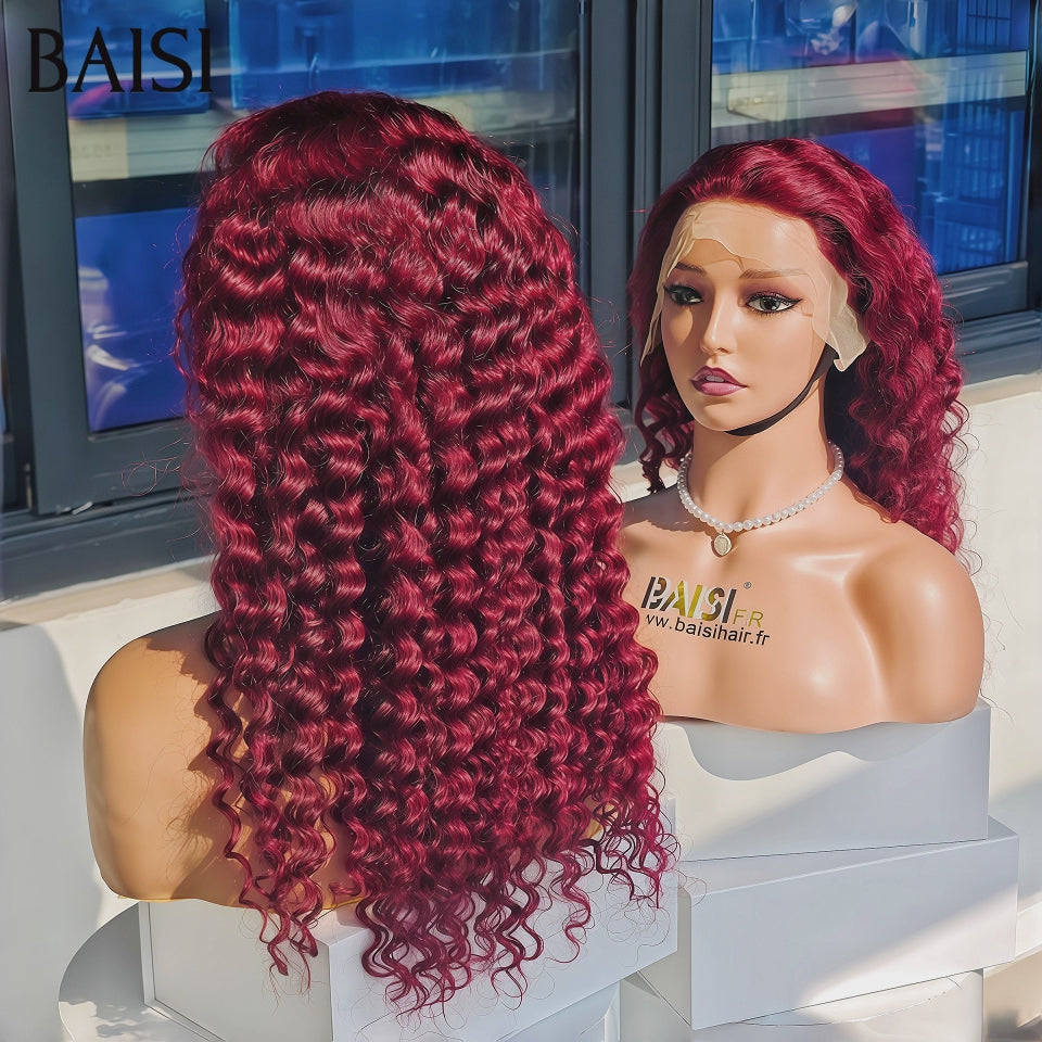 BAISI 13X4 lace frontal Perruques deep wave 12 pouces 69€ en couleur Bordeaux 100% Garantie satisfait PROMO Offre spéciale en 100% vrais cheveux humains