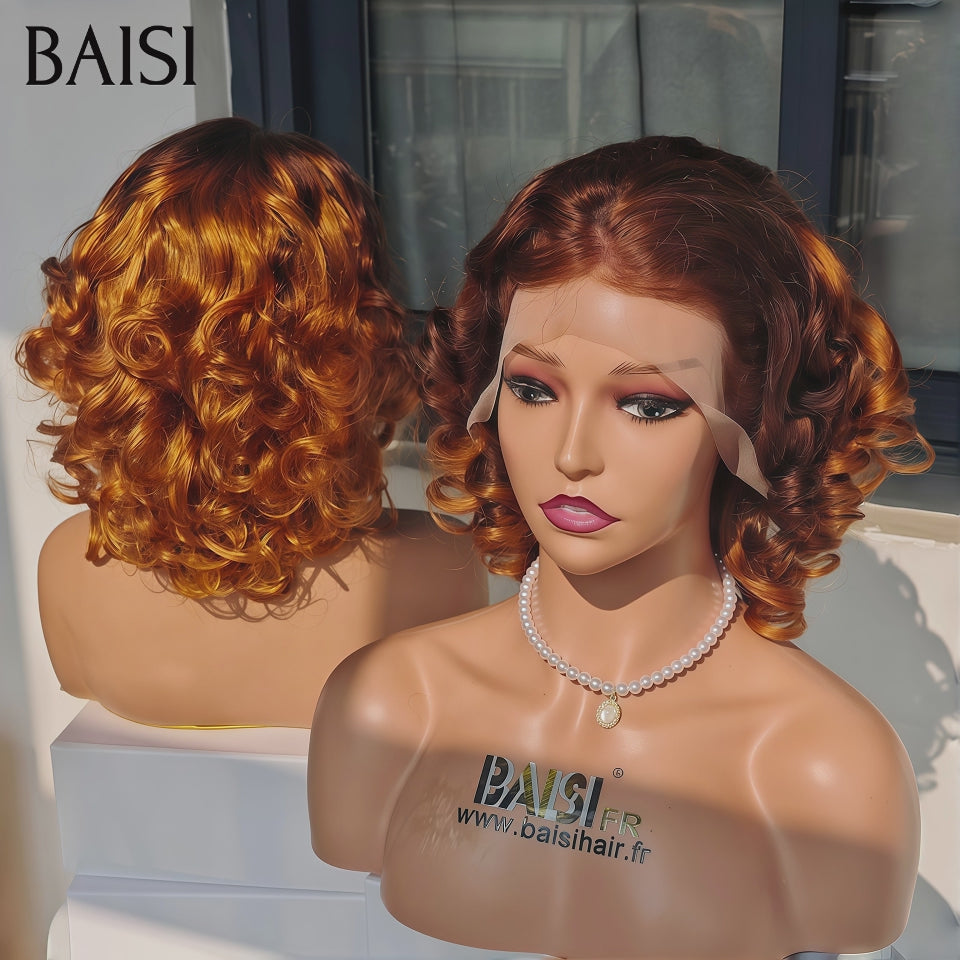 BAISI 13X4 lace frontal Perruques egg wave 10 pouces 68€ en couleur Miel Offre spéciale en 100% vrais cheveux humains