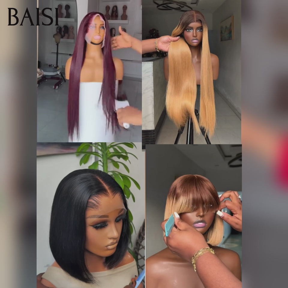 BAISI 4 Perruques 299€ 13x4 lace frontal Lisse Qualité Garantie 3 couleurs noir et miel et bordeaux en 100% Cheveux Humains