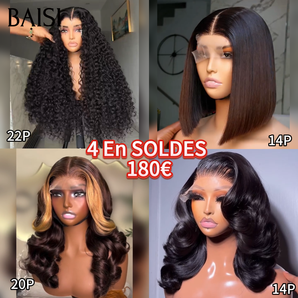 BAISI 4 Perruques en Soldes 180€ Moitié prix modèles au hasard selon le Facile à Revendre PROMO en 100% Cheveux Humains stock sans retour