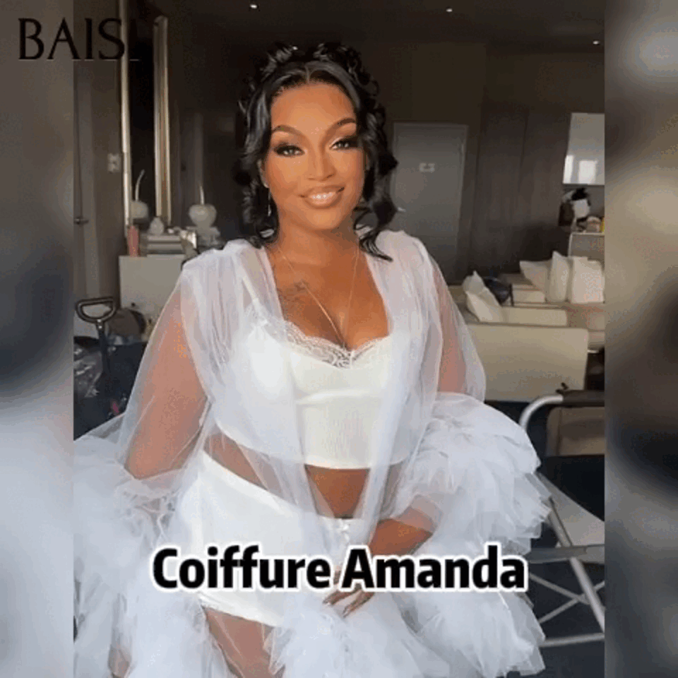 BAISI Coiffure de luxe Amanda Perruques Mariage noir Prête à porter chignon et personalisation comme sur la vidéo 100% identique avec lace frontale événement spécial