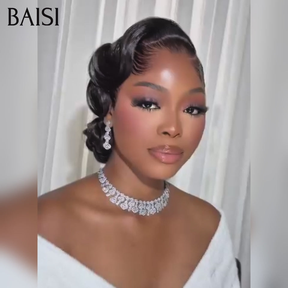 BAISI Coiffure de luxe Geneviève Perruques Mariage noir Prête à porter chignon et personalisation comme sur la vidéo 100% identique avec lace frontale événement spécial VIP100