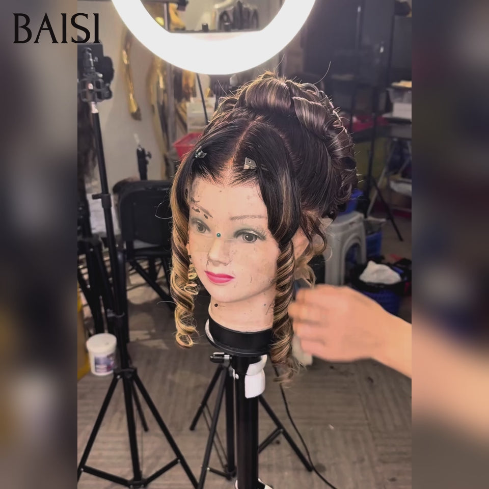 BAISI Coiffure de luxe Ninon Perruques Mariage Marron Mixte Miel Prête à porter chignon et personalisation comme sur la vidéo 100% identique avec lace frontale événement spécial