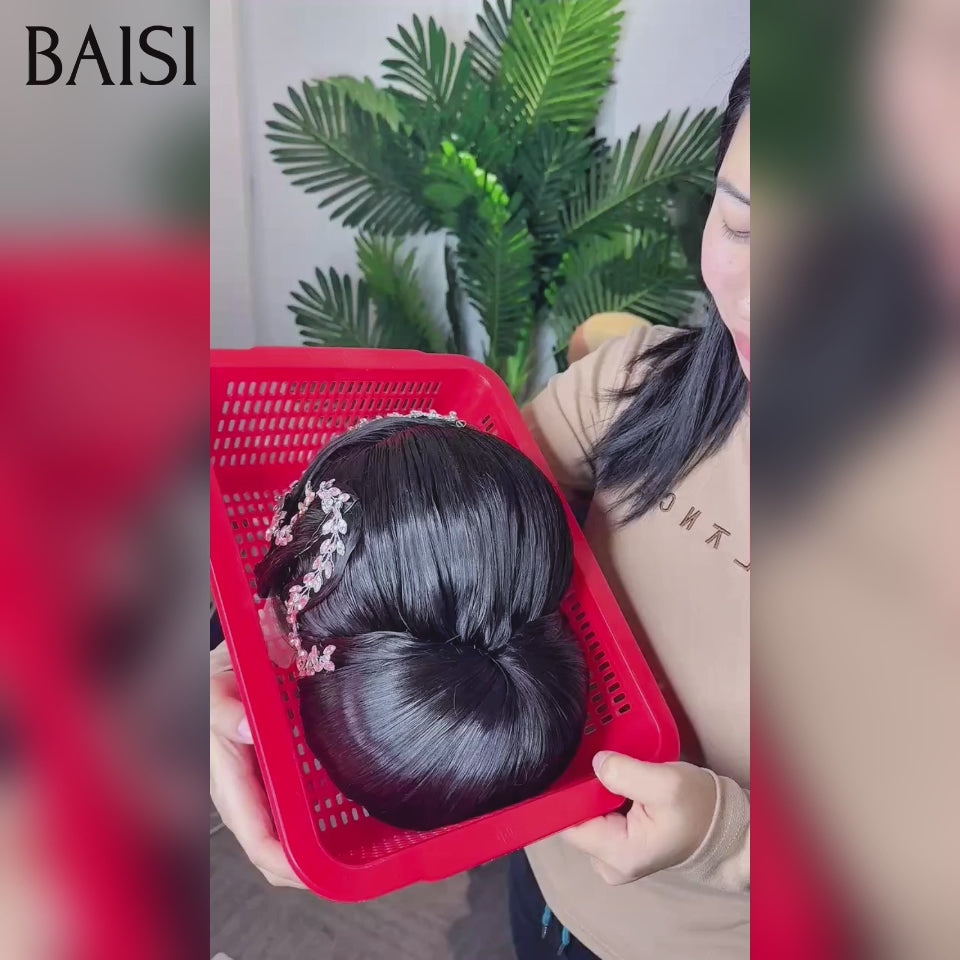 BAISI Coiffure de luxe Pauline Perruques Mariage noir Prête à porter chignon et personalisation comme sur la vidéo 100% identique avec lace frontale événement spécial