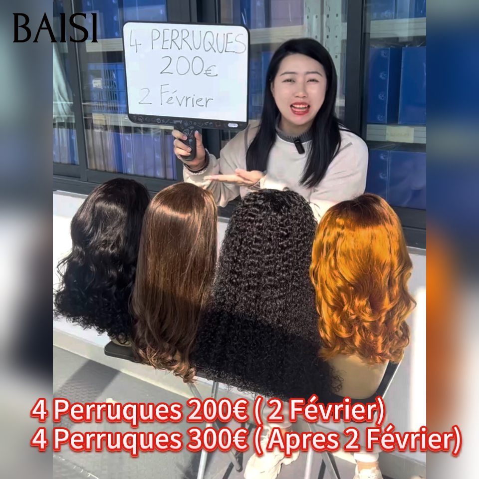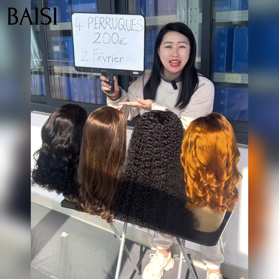 BAISI Offre à durée limitée 4 Perruques différentes 200€ modèles au hasard selon le Facile à Revendre en 100% Cheveux Humains stock sans retour