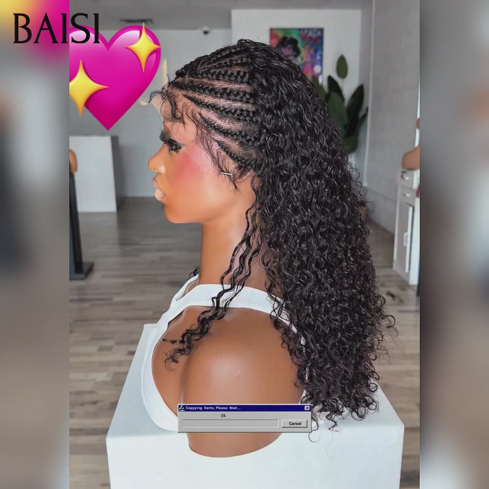 Promo Noël BAISI Perruque avec coiffure tressée natte lace frontal 13x4 curly wave noir 20 pouces Offre Flash 129€ 100% Cheveux Humains