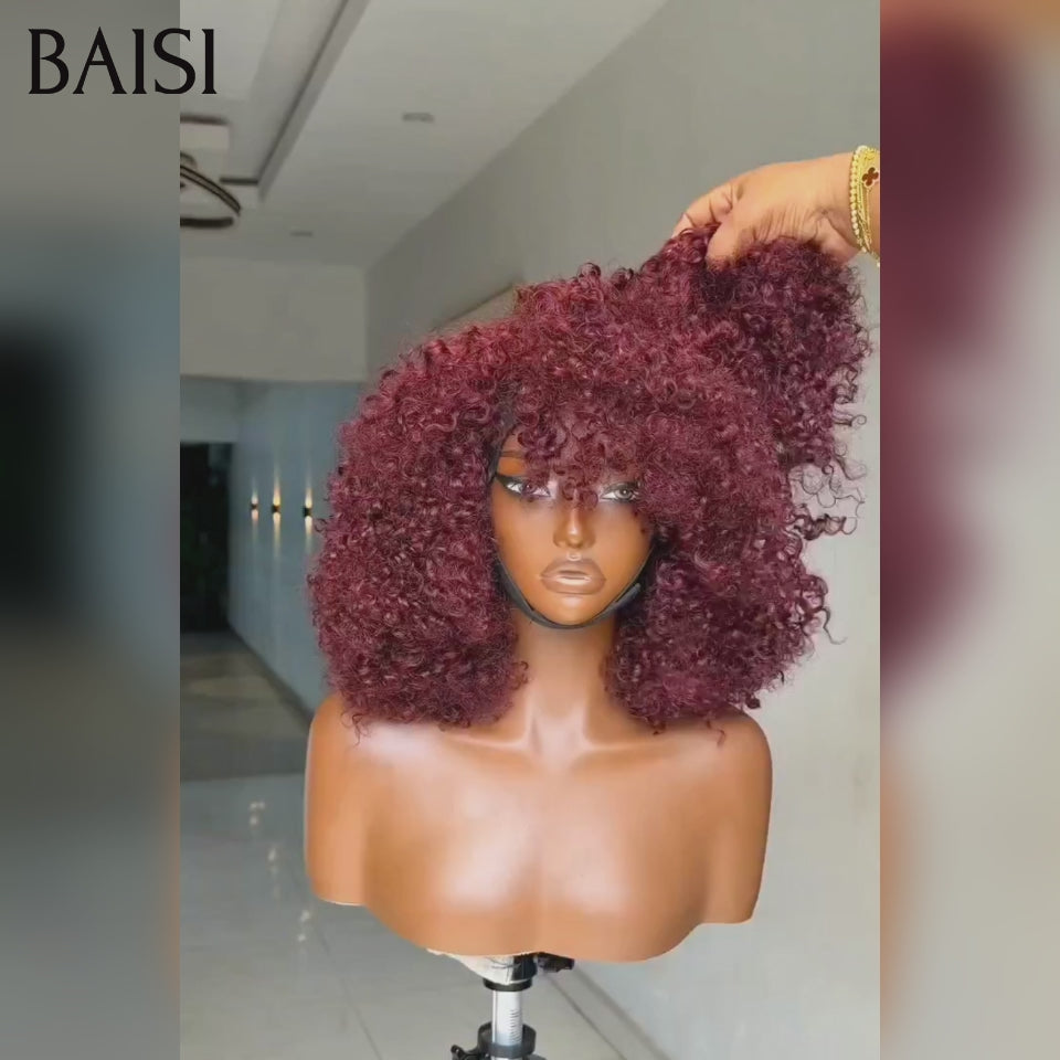 BAISI Perruque Bandeau BOB Prêt-à-porter kinky curly 14 Pouces 400% Volume couleur 33# Fabriquée A La Machine sans Colle sans lace en 100% Cheveux Humains