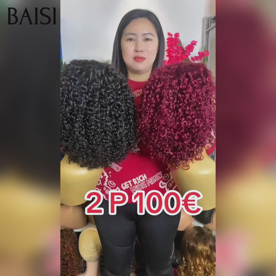BAISI pour revendre 2 perruques 100€ BOB 13x4 lace frontal curly wave en 2 couleurs NOIR et Bordeaux en 100% vrais cheveux humains