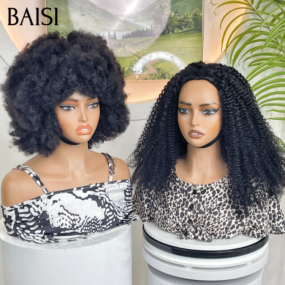 Perruque promo afro avec frange 14 Pouces en couleur NOIR sans colle Fabriqué à la Machine ou demi tête clips hair extension 20 Pouce en 100% Cheveux Humains