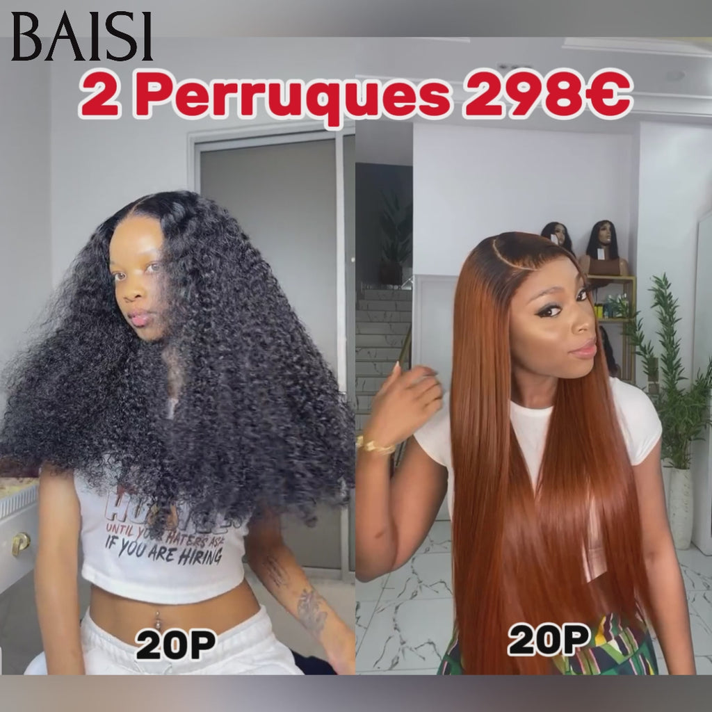 BAISI 6 Perruques en FRANCE 420€ PRIX en promo ou 2 perruques curly et lisse 20 pouces 298€ en 100% vrais cheveux humains, Code: FR20