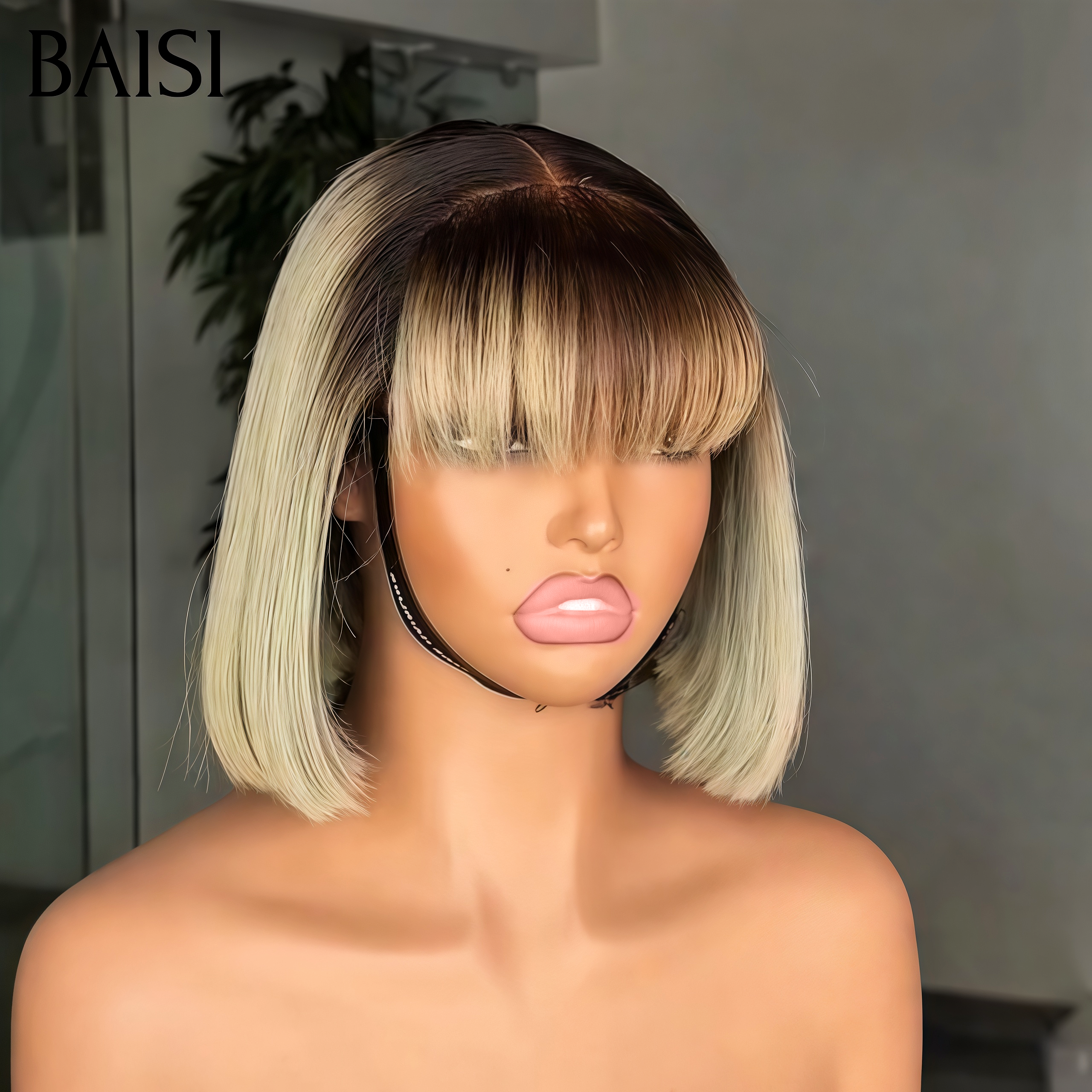 BAISI perruque SDD BONE STRAIGHT Lisse BOB avec Frange de luxe Personnalisation Identique à la vidéo 100% Vietnam Hair en 100% vrais cheveux humains