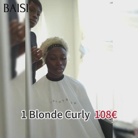 BAISI 13X4 Frontale Perruque Pixie petite coupe NOIR 6 pouces 79€ ou 1 pixie Blonde Curly 108€ En 100% Cheveux Humains