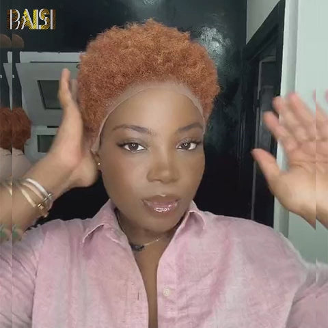 48H Livraison TVA 0€ BAISI Perruque pixie 13x4 lace frontal Kinky Straight Noir ou orange en 100% cheveux humains F-905