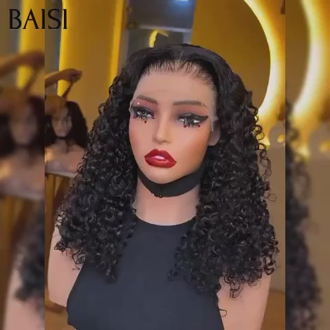 BLACK PROMO BAISI BLACK FRIDAY Offre limitée lace frontal bob curly wave Perruque 14 pouces 69€ noir en France en 100% Cheveux Humains