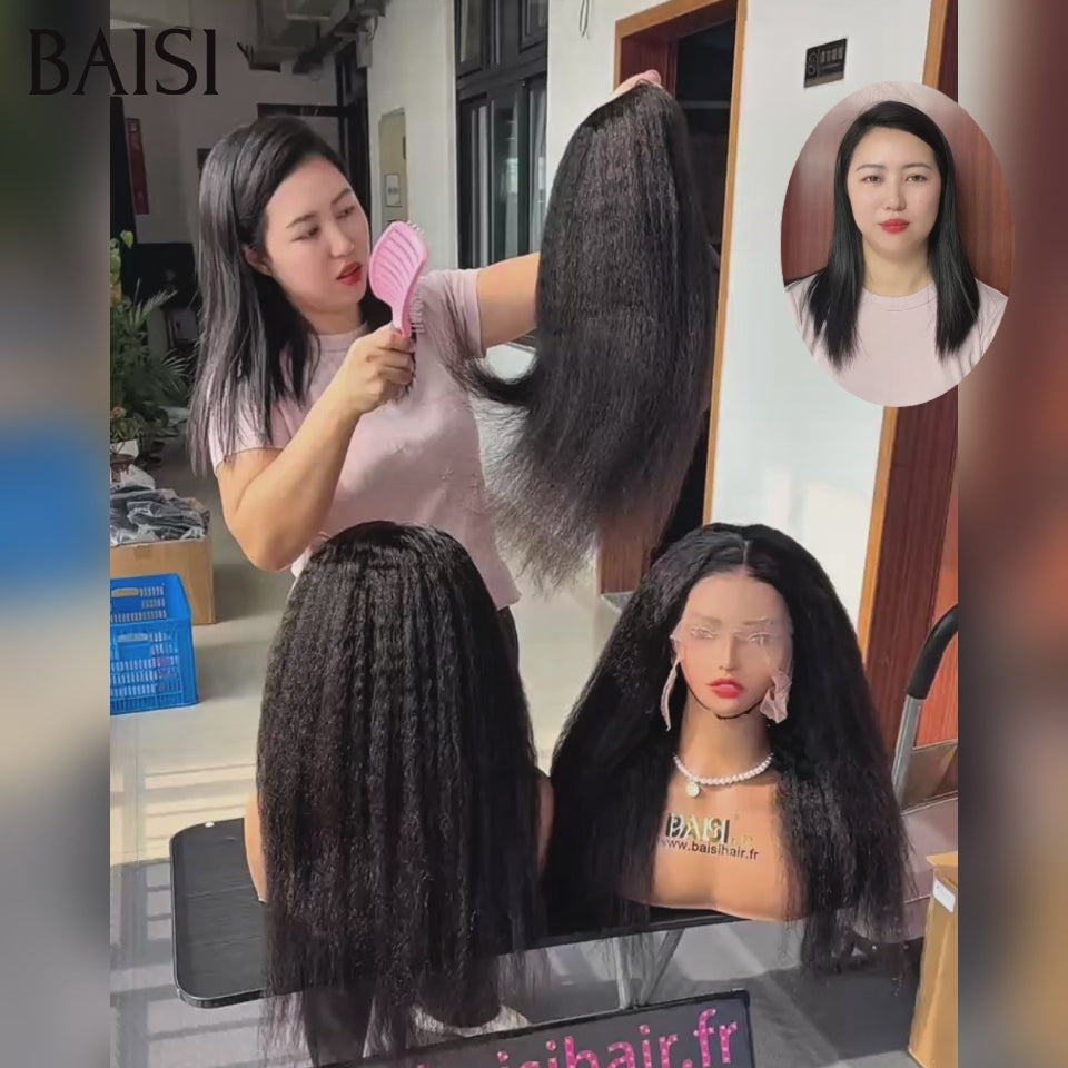 BAISI PROMO Offre spéciale 13X4 lace frontal Perruques kinky straight 14 pouces en 100% vrais cheveux humains
