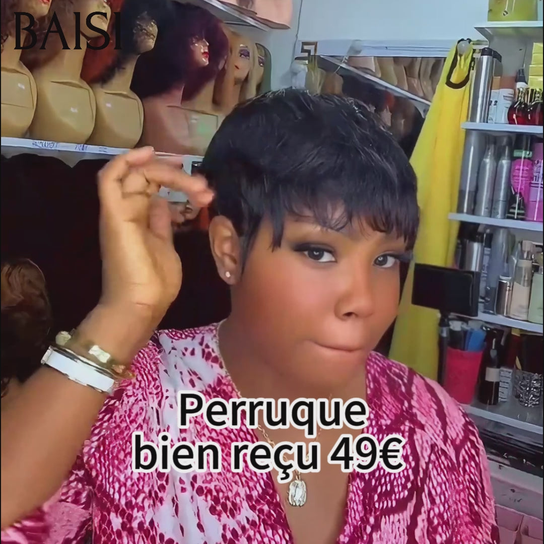 48H Livraison TVA 0€ BAISI Grande Promo petite coupe fabriqué à la machine en 3 couleur NOIR 1B# ou bordeaux 99J# ou miel 27# En 100% Cheveux Humains #026 FR38