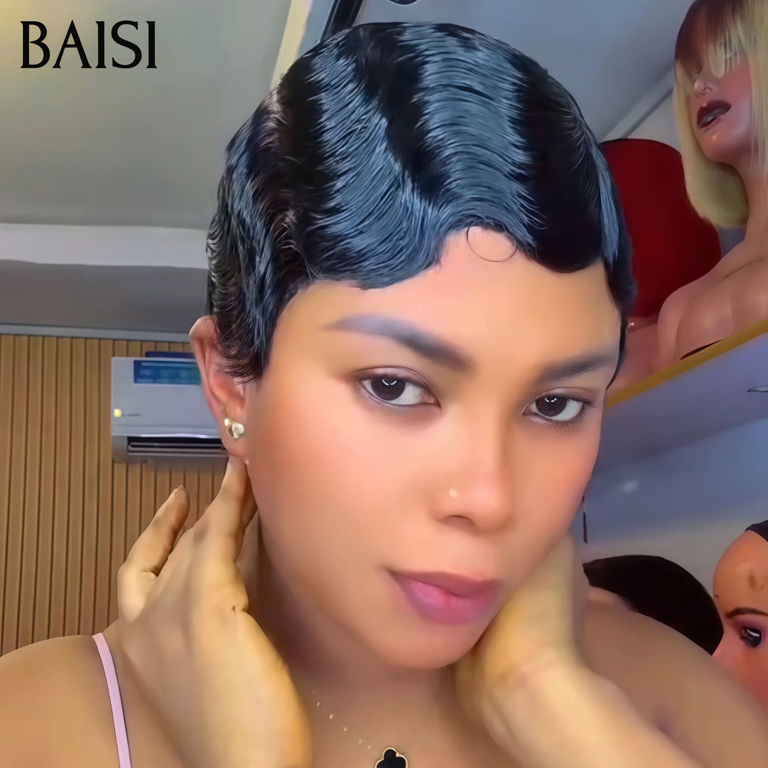 48H Livraison TVA 0€ BAISI 1 Perruque 46€ water wave Fabriqué à la Machine ou 3 Perruques combinée à petit prix perruque 125€ moitié prix en 100% cheveux humains de bonne qualité livraison rapide mp50