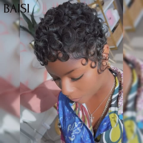 Achetez 2 Prix D'usine BAISI Achetez 2 perruques minimum au prix d'usine fournisseur en France TVA 0€ 48H arrivé Petit Perruque pixie finger wave ou curly wave en 100% Vrais Cheveux Humains (Pas Besoins De Code)
