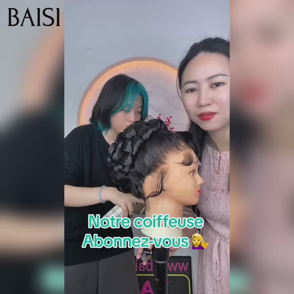 Coiffure de luxe Perruques Mariage NOIR Prête à porter chignon et personalisation comme sur la vidéo 100% identique avec lace frontale événement spécial