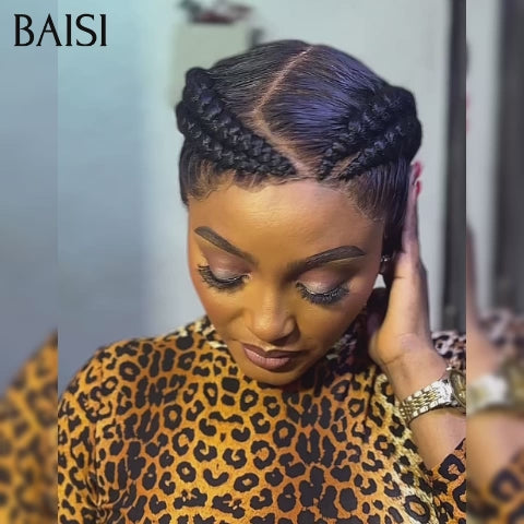 BAISI Perruques Full Lace Natte Promo 100% comme indiqué sur la photo NOIR Coiffure Chignion En cheveux humains