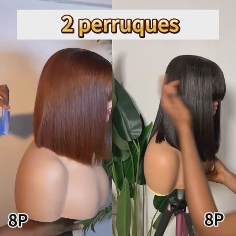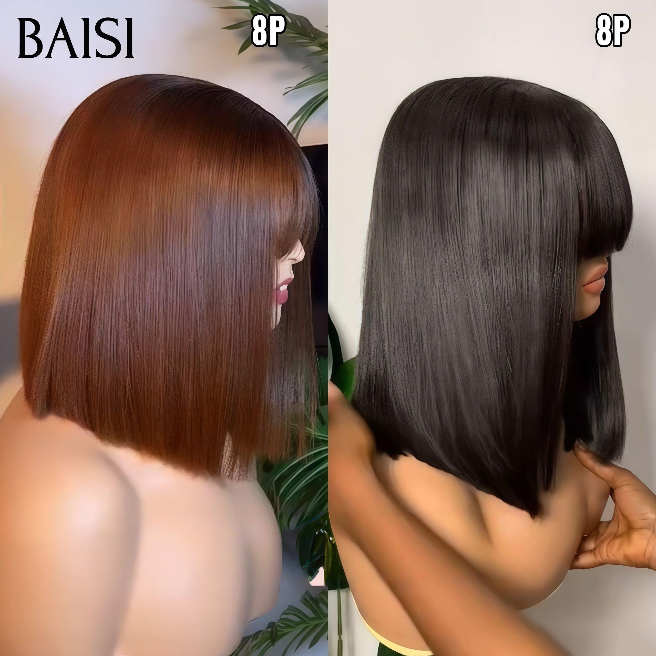 BAISI 2 Perruques 135€ Lisse avec Frange 8 Pouces Sans lace Lisse NOIR et Marron 250% densité DE luxe en 100% Cheveux Humains BS65