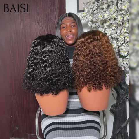 48H Livraison TVA 0€ BAISI 4X4 lace Perruques 3 Perruques pour revendre 250€ 4X4 Lisse Bob en couleur NOIR et waterwave 1B#,4-30# 14 Pouces en 100% vrais cheveux humains BS65