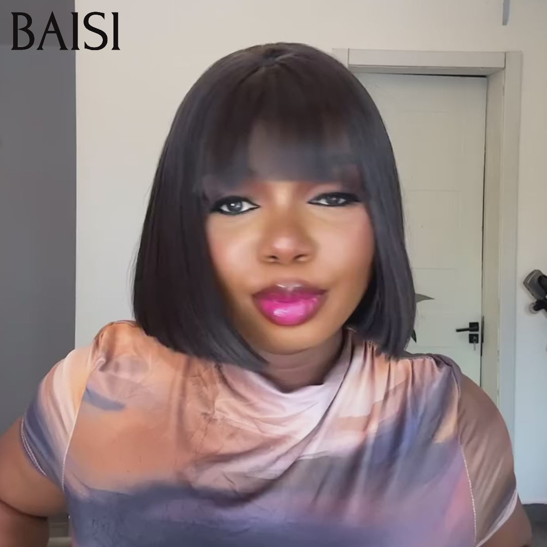 48H Livraison TVA 0€ BAISI COUPE CHINOISE SANS LACE PERRUQUE BOB LISSE AVEC FRANGE CODE : FR38