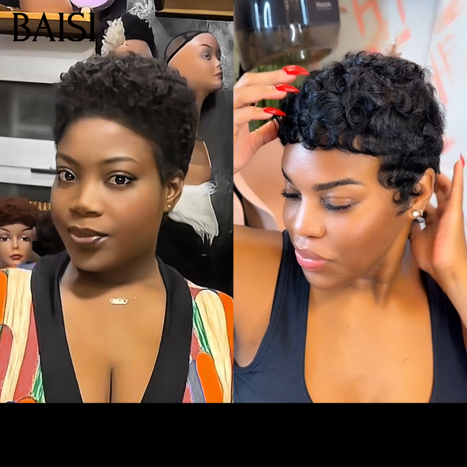48H Livraison TVA 0€ BAISI Facile à Revendre PROMO Prix Grossite 2 Perruques 58€ sans Colle finger wave et afro curly en France en 100% Cheveux Humains