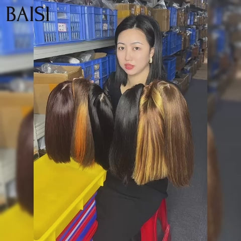 BLACK PROMO 48H reçu BAISI Lot de 6 perruques Flash Offer PROMOTION 350€ DE luxe 6 Couleur différents 2x6 Lisse ou Lisse avec Frange Bob 8 Pouces en 100% vrais cheveux humains VIP100