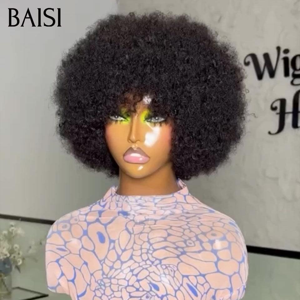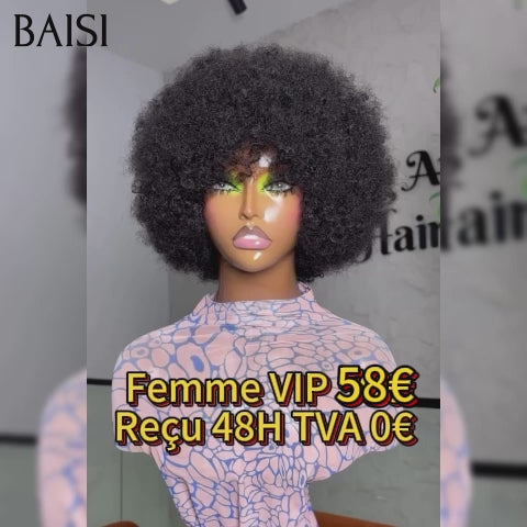 48H Livraison TVA 0€ BAISI pixie afro curly 58€ noir sans lace sans colle en 100% Cheveux Humains fabriqué à la machine FR38