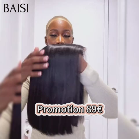 48H Livraison TVA 0€ BAISI PROMO TVA 0€ 98€ SDD BONE Straight 300% densité 100% Vietname Hair 2x6 Lace Closure Perruque Lisse En 100% Cheveux Humains Vietnam Hair FR38