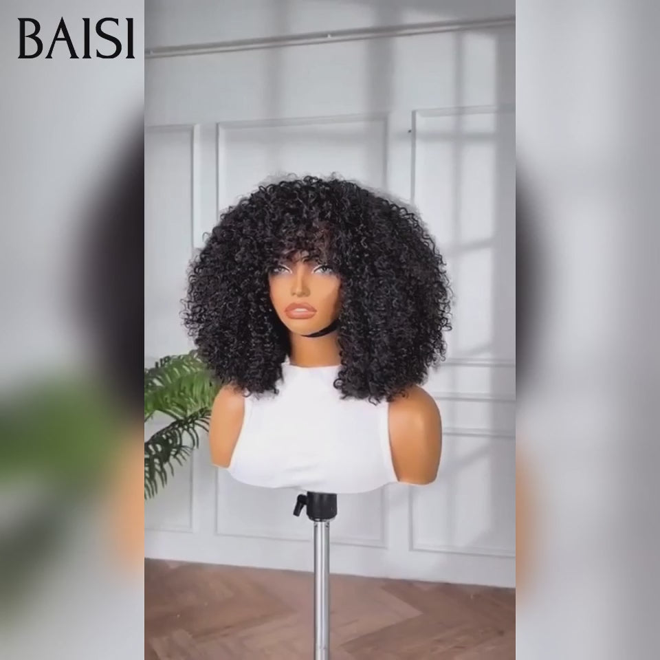 48H Livraison TVA 0€ BAISI Perruque promotion Facile à porter water wave avec Frange en France sans Colle Fabriqué à la Machine 12 Pouces 78€ en 100% Cheveux Humains