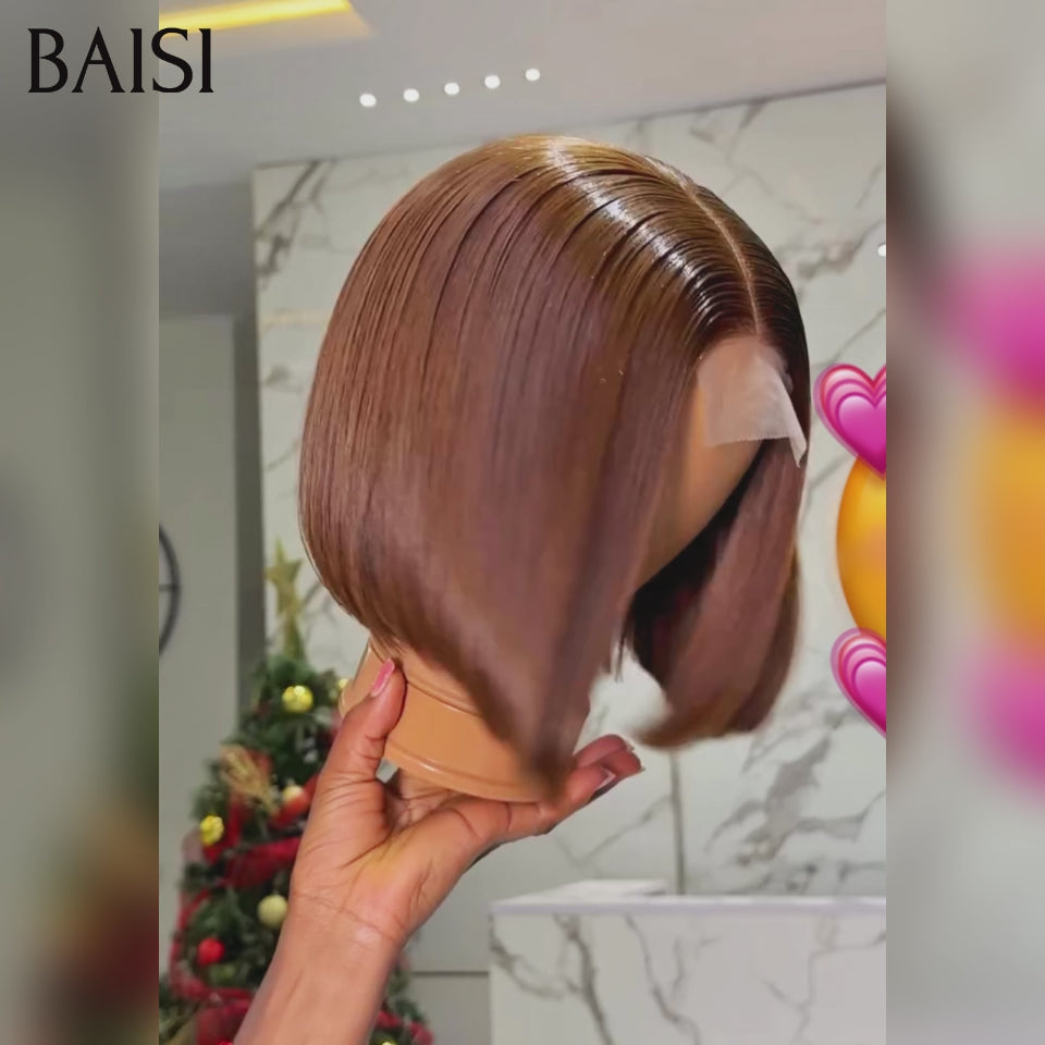 Achetez 2 Prix D'usine BAISI Achetez 2 perruques minimum au prix d'usine fournisseur 2x6 Perruque Bob Lisse En Marron Coupe Carrée En 100% Vrais Cheveux Humains en 100% Vietnam Hair (Pas Besoin De Code)