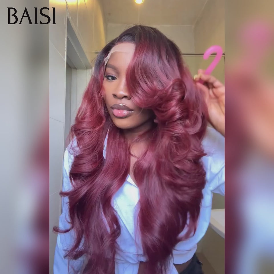 Achetez 2 Prix D'usine BAISI Achetez 2 perruques minimum au prix d'usine fournisseur lace frontale 13x4 Perruque Lisse 1b Rouge Bordeaux Body wave en 100% Cheveux Humains(Pas Besoin de Code)