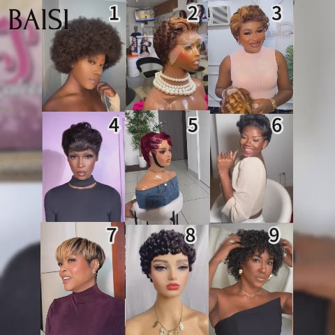 Achetez 2 Prix D'usine BAISI 3 perruques au choix 89€ ajouter dans le panier un par un au prix d'usine fournisseur coiffure Personnalisée boucle sans colle 10 différentes types de perruques pixie vente en gros pour revendre (Pas Besoin de Code)
