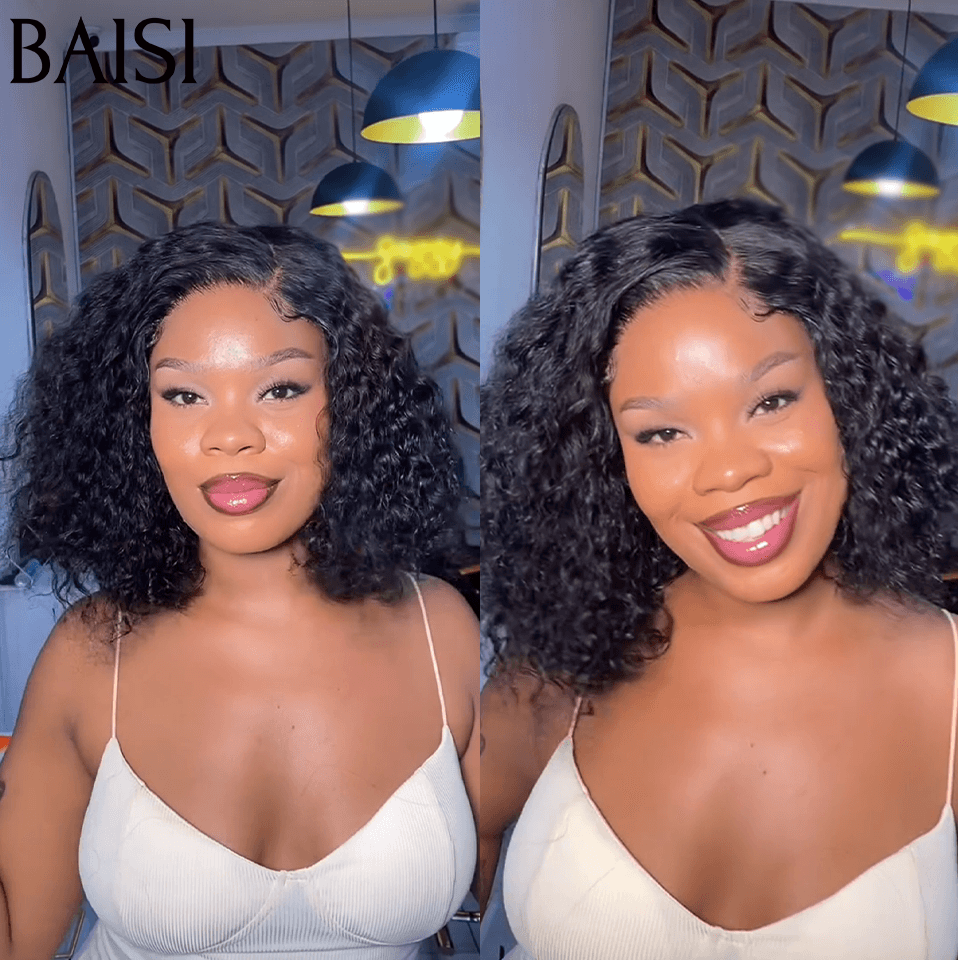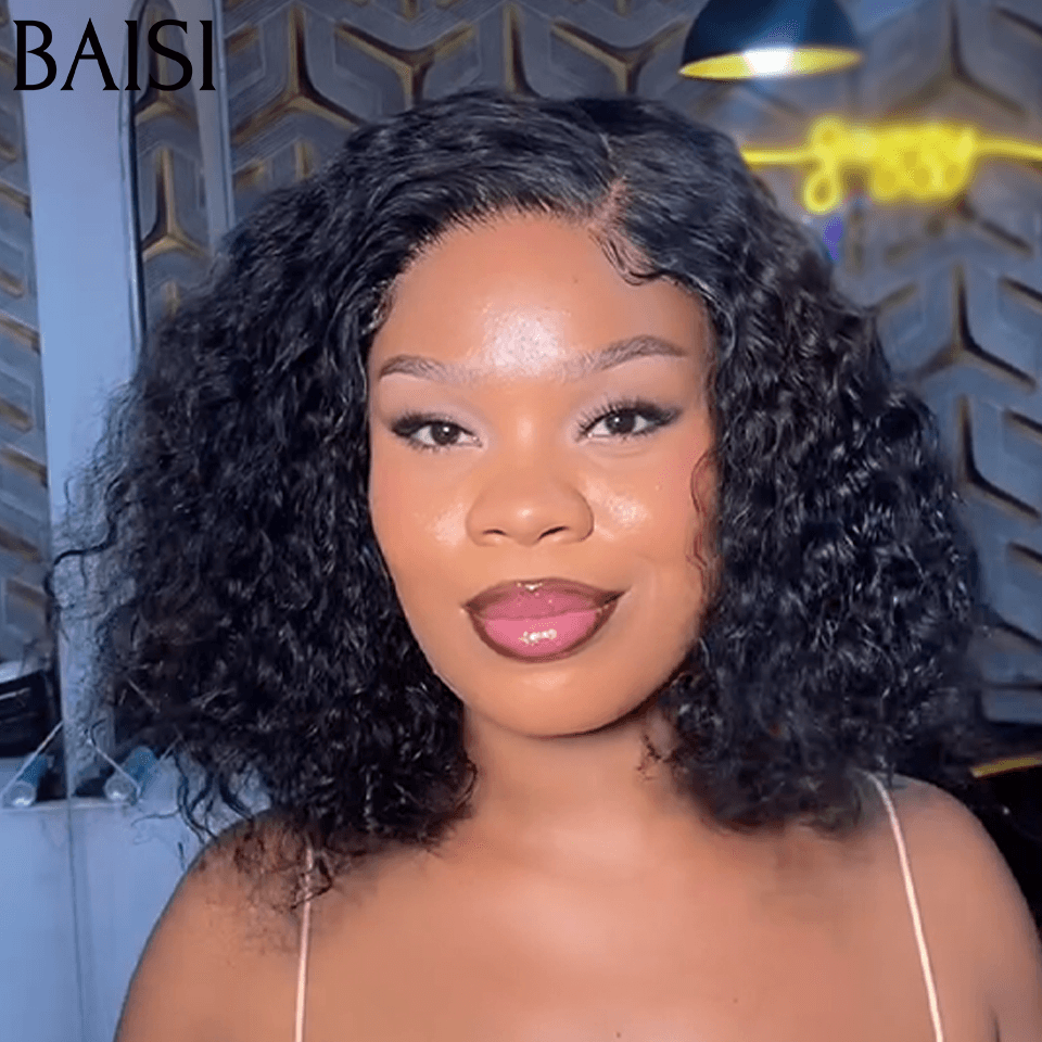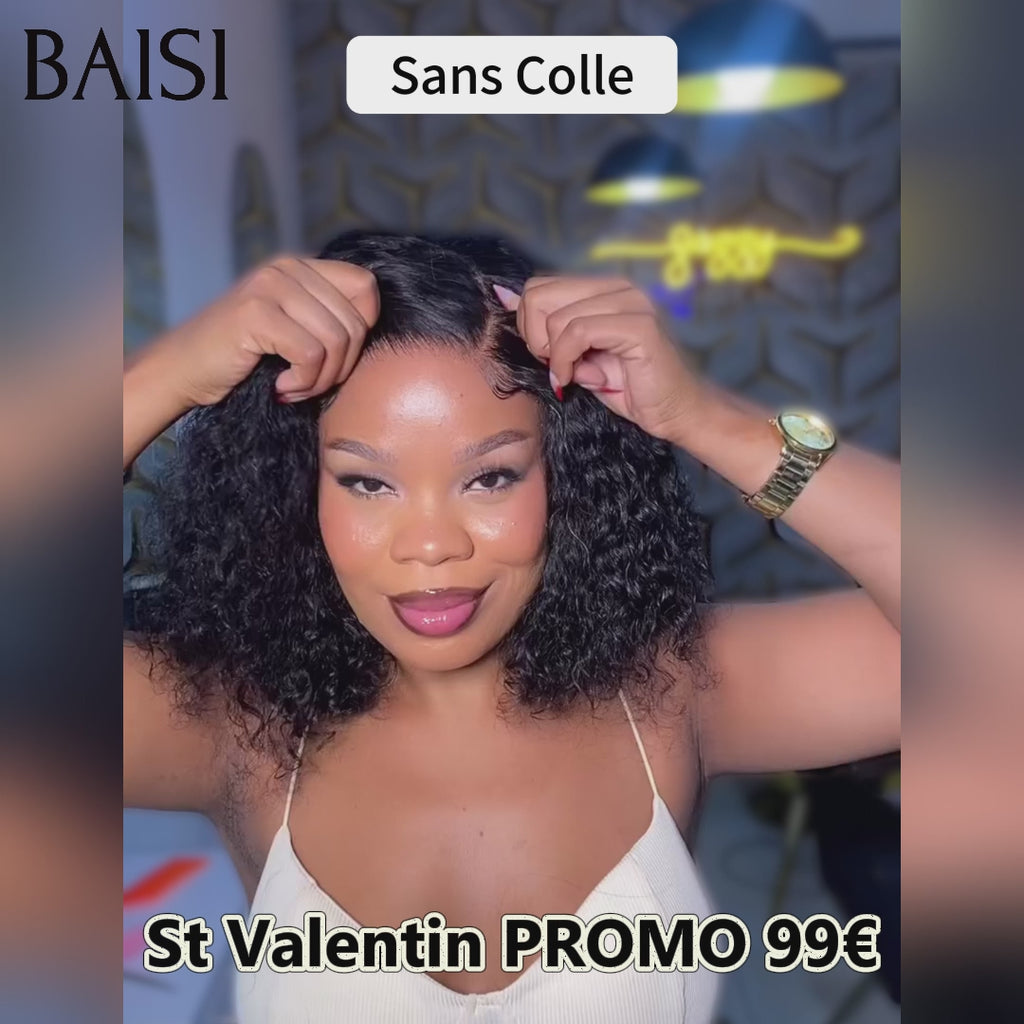 BAISI Promo Perruque Sans Colle 13X4 Curly Noir san colle 10 Pouces 99€ en 100% Cheveux Humains VIP100
