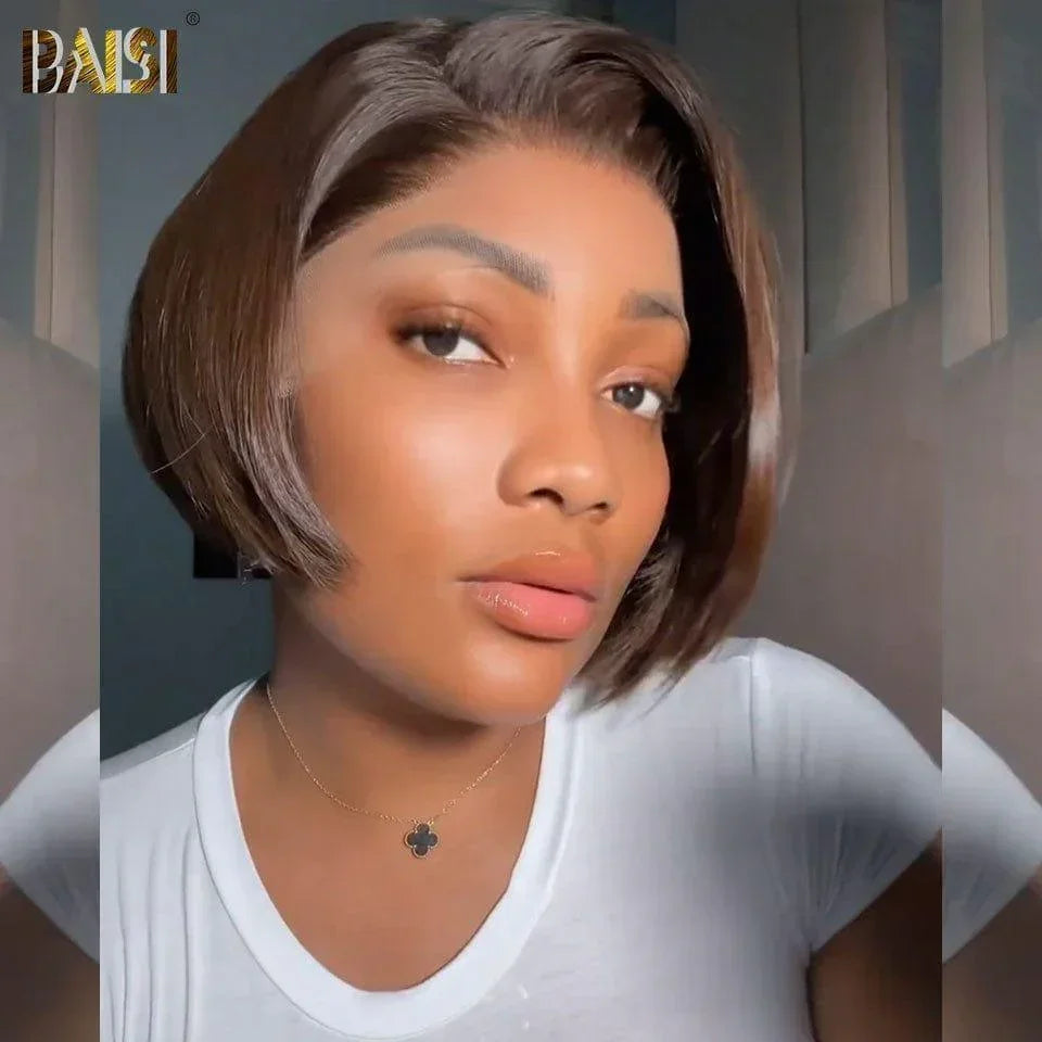 48H Livraison TVA 0€ BAISI Promo Cadeaux Coupe Pixie Lisse Marron 1 Perruque + 1 fer gratuit 69€ en 100% cheveux humains VIP100