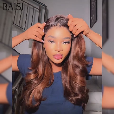 BAISI Promo Cadeaux Perruque 13X4 lace frontal Body Wave 18 pouces en Couleur #1B#4 + Fer gratuit 169€ VIP100