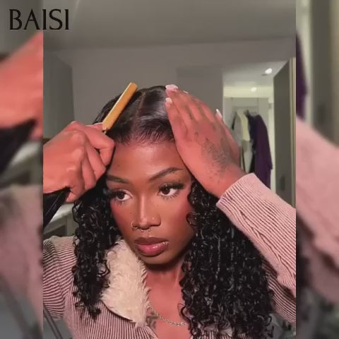 BAISI Promo Cadeaux Perruque 13x4 lace frontal Curly Wave 18 pouce + 1 FER gratuite = 99€ en 100% Cheveux Humains VIP100