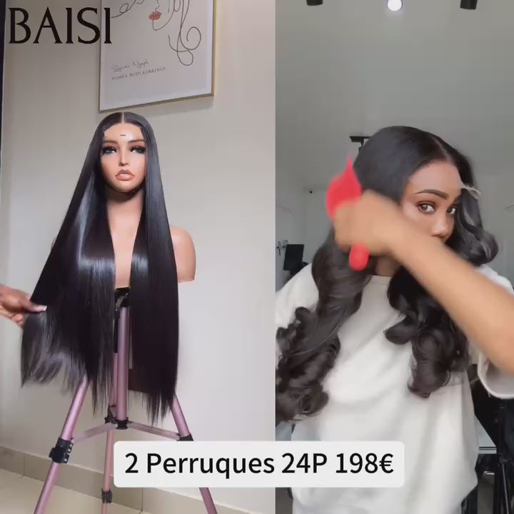 BAISI 2 Perruques Body wave et Lisse pour revendre 198€ 13X4 lace 24 pouces en 100% vrais cheveux humains BS65