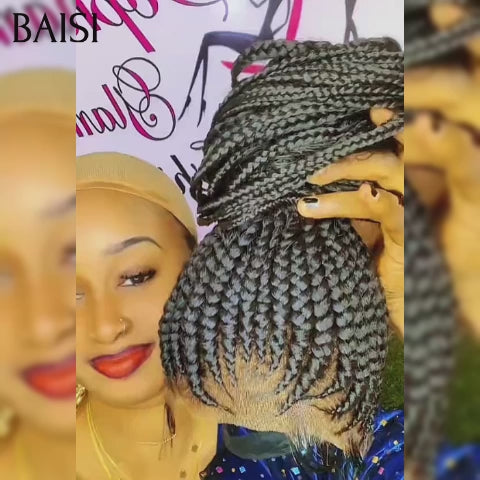 BAISI Full Lace Natte long perruque 119€ En Cheveux Synthétique Coiffure Chignion BS65
